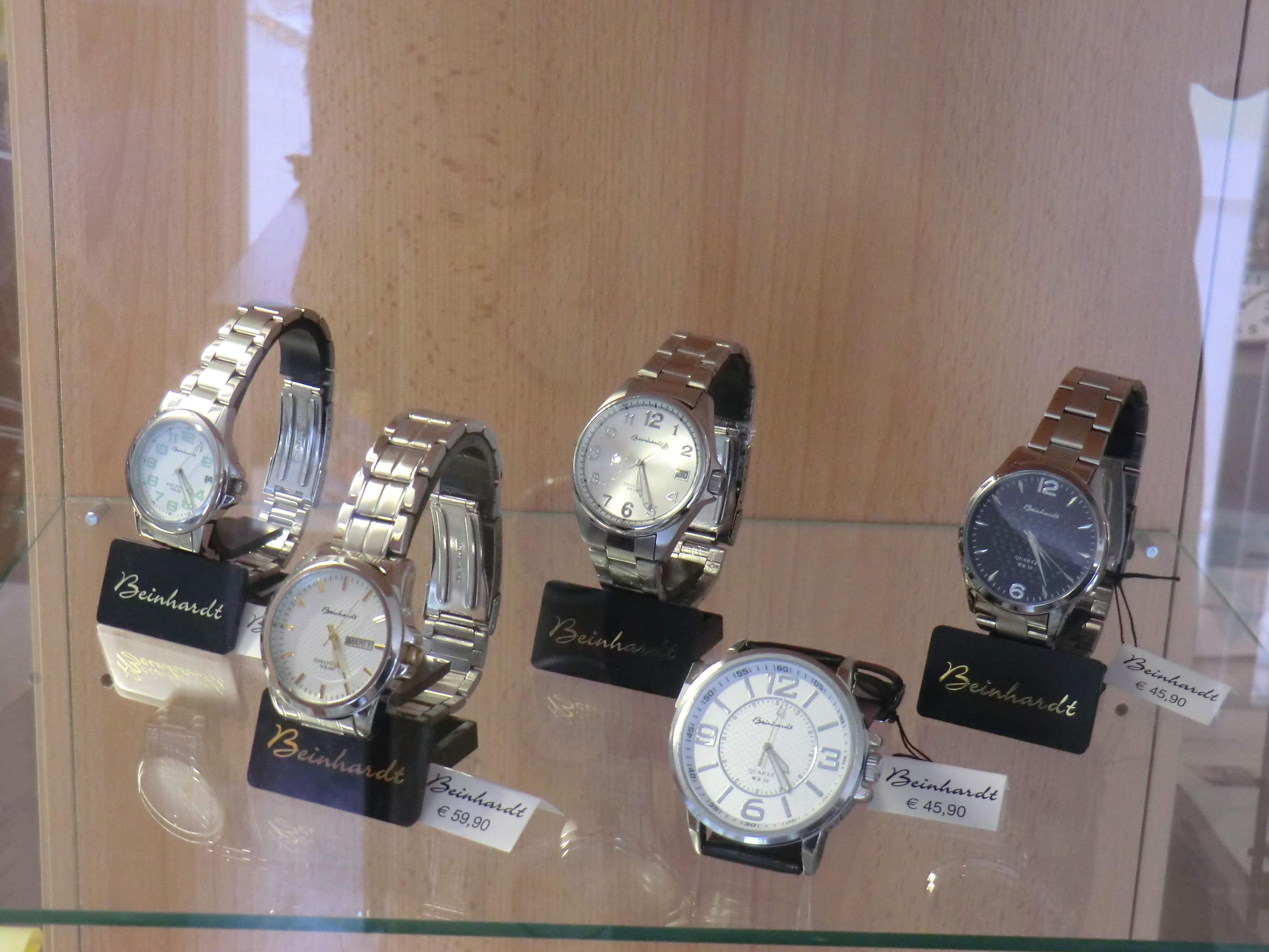 Neben Damen- und Herrenarmbanduhren der Marken Regent, Beinhardt, ULA und Casio führen wir auch Wecker und Wanduhren von ULA, Atlanta, AMS und Eurochron, sowie Leder- und Metallbänder von Fluco und Bonflair.